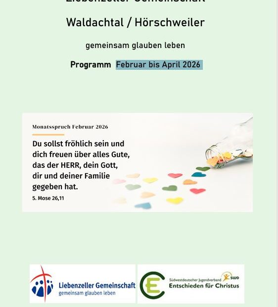 Vielleicht geht es euch manchmal auch so, es ist nicht immer leicht im Gebet dran zu bleiben. Damit es leichter fällt, gibt es immer montags, um 19:45 Uhr, im Gemeinschaftshaus einen kleinen Gebetstreff.